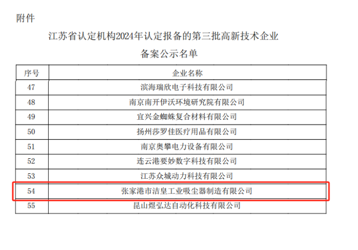 2024年12月份,張家港市粉色91视频工業吸塵器製(zhì)造有限公司榮獲“高(gāo)新技(jì)術(shù)企業”稱號,由此正式邁入高新技術企業行列。“高新技術企業”,是指在國(guó)家重點(diǎn)支持