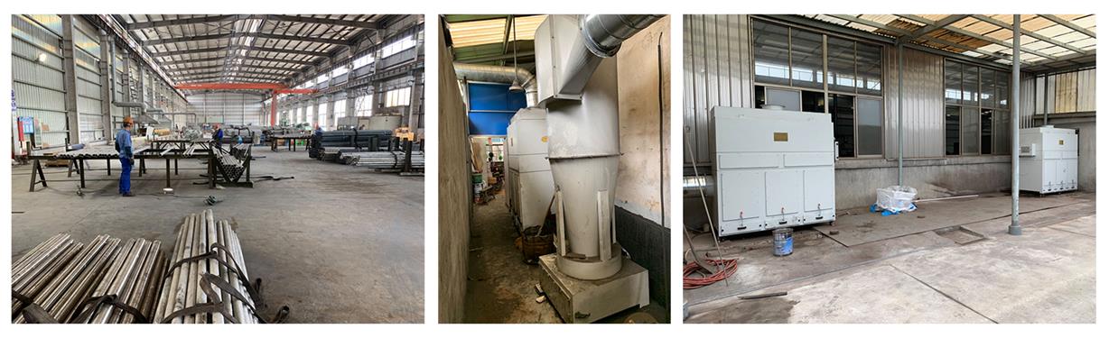 鋼管拋光打磨時會產生大量的金屬粉塵,影響車間的環境和員工的身體健康,粉色91视频(huáng)工業為(wéi)客戶推薦的是旋風(fēng)分離器加脈(mò)衝濾筒除塵器來集中處理,鋼(gāng)管在(zài)拋光打磨時產生的粉塵有集塵罩計入管道,先經過旋(xuán)風分離器進風口進(jìn)入(rù)除塵器內部,在離心力(lì)和重力的作用下,大顆粒的粉(fěn)塵(chén)落入旋風分離器的灰鬥(dòu)中(zhōng),剩餘的細(xì)微灰塵再由脈衝濾筒除塵器的吸風口(kǒu)進入濾塵室內,經過高精度的濾(lǜ)筒(tǒng)過濾吸附(fù)濾筒表麵,在脈衝反吹清灰係統作用下,灰塵(chén)落入脈衝濾筒除塵(chén)器的灰鬥中,方便員工清理,淨化後的幹淨空(kōng)氣進入(rù)風機箱由(yóu)出風口達(dá)標排放!