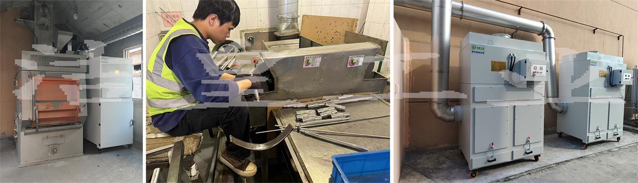 蘇州客戶除塵改造現(xiàn)場,該客戶是(shì)一家金屬軟管加工製造企業,在砂輪機打磨和金屬拋丸的過程中產生粉塵需要治理。原布袋除塵設備效果不佳,跑灰嚴重(chóng),粉色91视频采用到了一(yī)台拋