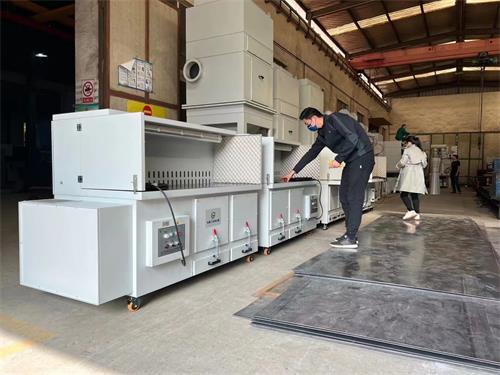 一批浙江(jiāng)客戶定製的打磨除塵工作台打包待發貨,該機在台麵下(xià)設計安裝過濾器,抽屜式灰鬥,引風機及控製,電腦脈衝自動反吹清灰,風機出口裝有消音箱。該機(jī)模塊化設(shè)計組裝,零件(jiàn)噴塑處理,工況需要亦可不鏽鋼製作,整機一(yī)體,結構巧妙,能整機移動。選擇清灰效果最佳規格的濾筒,濾筒材質可(kě)根據工況選擇配置。