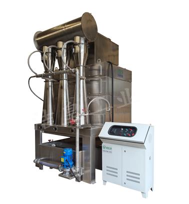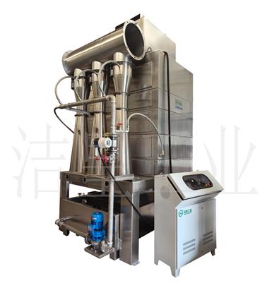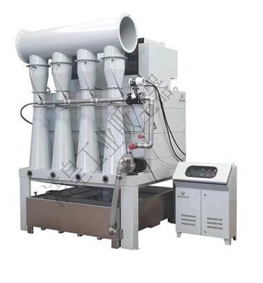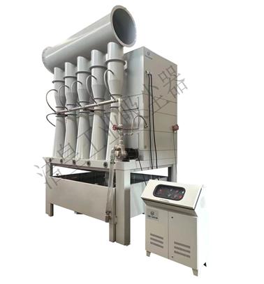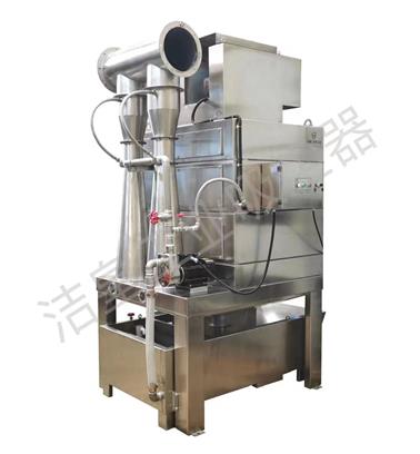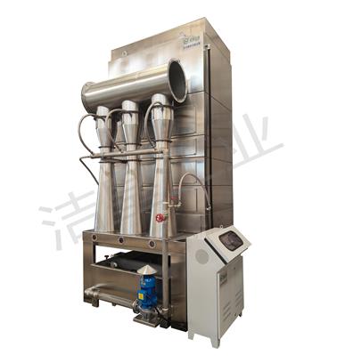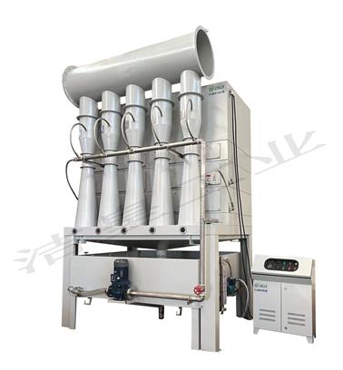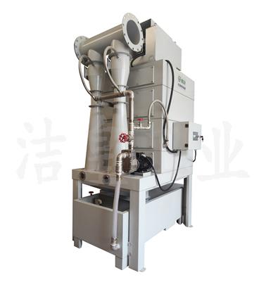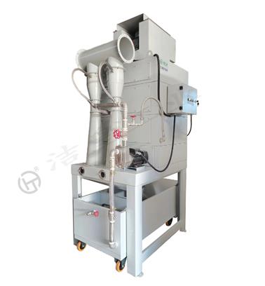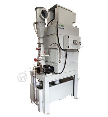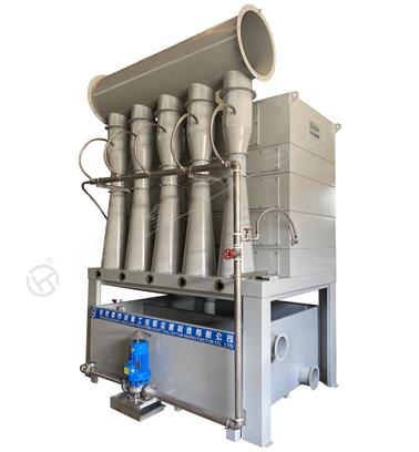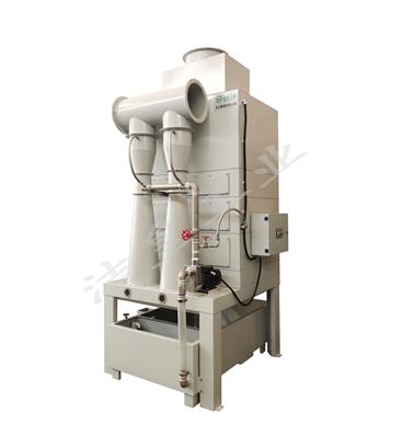 WQL型文(wén)丘裏濕式除塵器,該機利用文丘裏原(yuán)理和氣相負壓使得噴淋液相形成,將(jiāng)吸入的煙霧,塵埃和廢氣被水霧、水漫(màn)捕捉吸附(fù)形成大液滴落入沉澱池,部分細沫通過初過濾、高效過濾除沫器浸潤吸附回落(luò)沉澱池。沉澱池沉澱水供給(gěi)循環泵循環噴(pēn)淋,周(zhōu)而複始,水位由液位器(qì)控製,進水管自動補給(gěi)運作所蒸發(fā)的水汽損失。沉澱池底部的淤泥或碎屑可通過撈渣口人工清理(lǐ)或鬥式水箱底部球(qiú)閥排出。該(gāi)機過濾單元無堵塞,高沉降分離效率,排出空氣符合標準。該機模塊(kuài)化設計(jì)組裝,零件噴塑處(chù)理,工況需要(yào)亦可不鏽鋼(gāng)製作(zuò)。
