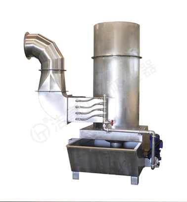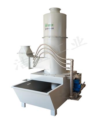 該機由噴淋管,筒體,錐體,進氣管,排氣管,水箱組成。模(mó)塊式組裝(zhuāng)結構,材(cái)質(zhì)可選(xuǎn)用碳鋼噴塑或不鏽鋼製作。當煙氣切向從吸入口進入(rù)經過噴淋管,噴嘴噴射出來的水霧和煙氣在高(gāo)速氣流衝擊下形成霧(wù)滴。在旋風原理作用下,依(yī)靠產(chǎn)生(shēng)的離心力將霧滴甩向(xiàng)旋風體筒壁,使得失去慣性力的霧滴在重力的作用下落入水箱,幹淨氣體反方向通過排氣管排(pái)出。廣泛適用於幹濕混合加工,磨削拋光(guāng)加工,易燃易爆介質加(jiā)工(gōng),粘性粉塵,烘烤濕霧油霧等領域。