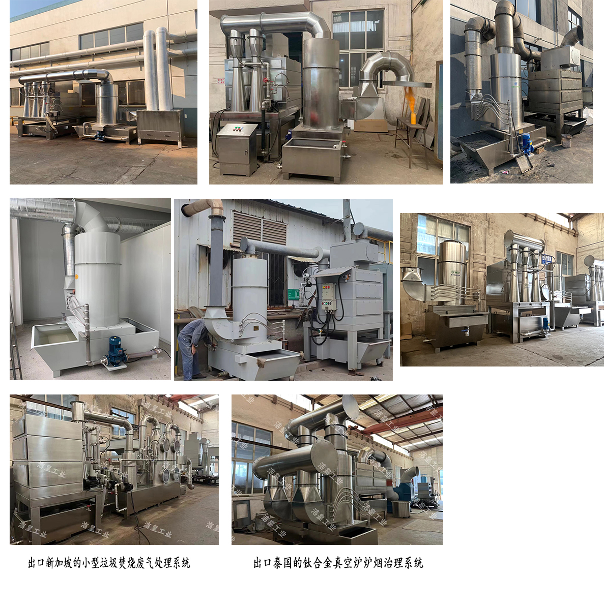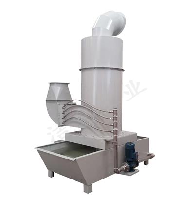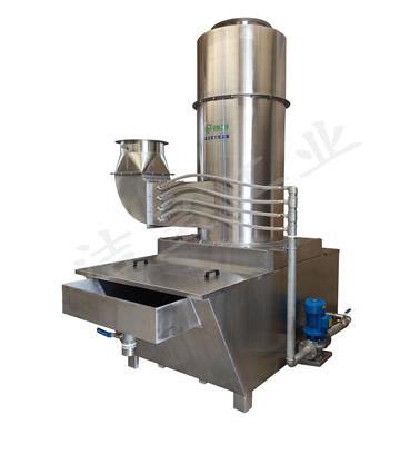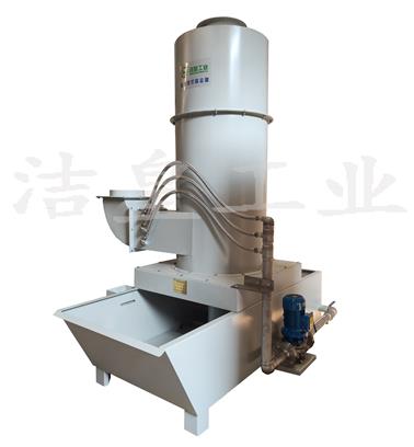 旋風濕式除塵器(qì):該機由噴淋管(guǎn),筒(tǒng)體,錐體,進氣管,排氣管,水箱組成。模塊式組裝結構,材質可選用碳鋼噴(pēn)塑或不鏽鋼製(zhì)作。當煙氣切向從吸入口進入經過噴淋管,噴(pēn)嘴噴(pēn)射出來的水霧和煙氣在高速氣流衝擊(jī)下形成霧滴。在(zài)旋風原理作用下,依靠產生的離心(xīn)力(lì)將霧(wù)滴甩向旋風體筒(tǒng)壁,使得失(shī)去慣性力的霧滴在重力的作用(yòng)下落(luò)入水箱,幹淨氣體反方向(xiàng)通過排氣管排出(chū)。廣泛適用於幹濕混合(hé)加工,磨削拋(pāo)光加工,易燃易爆(bào)介質加工,粘性粉塵,烘烤濕霧油霧等領域。